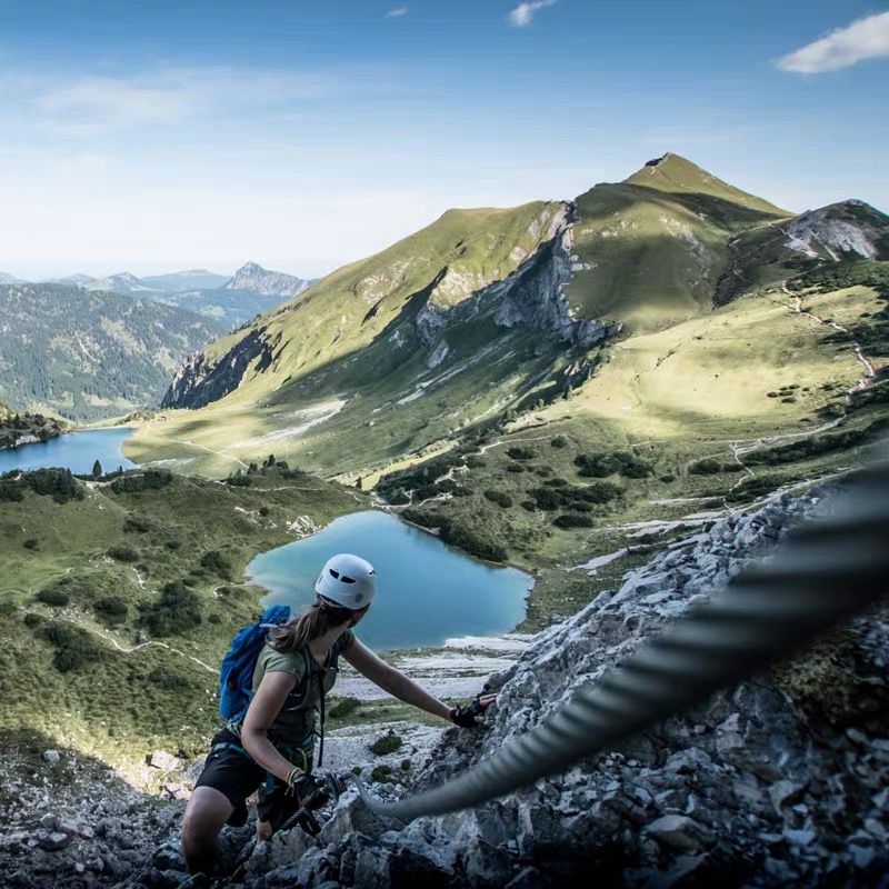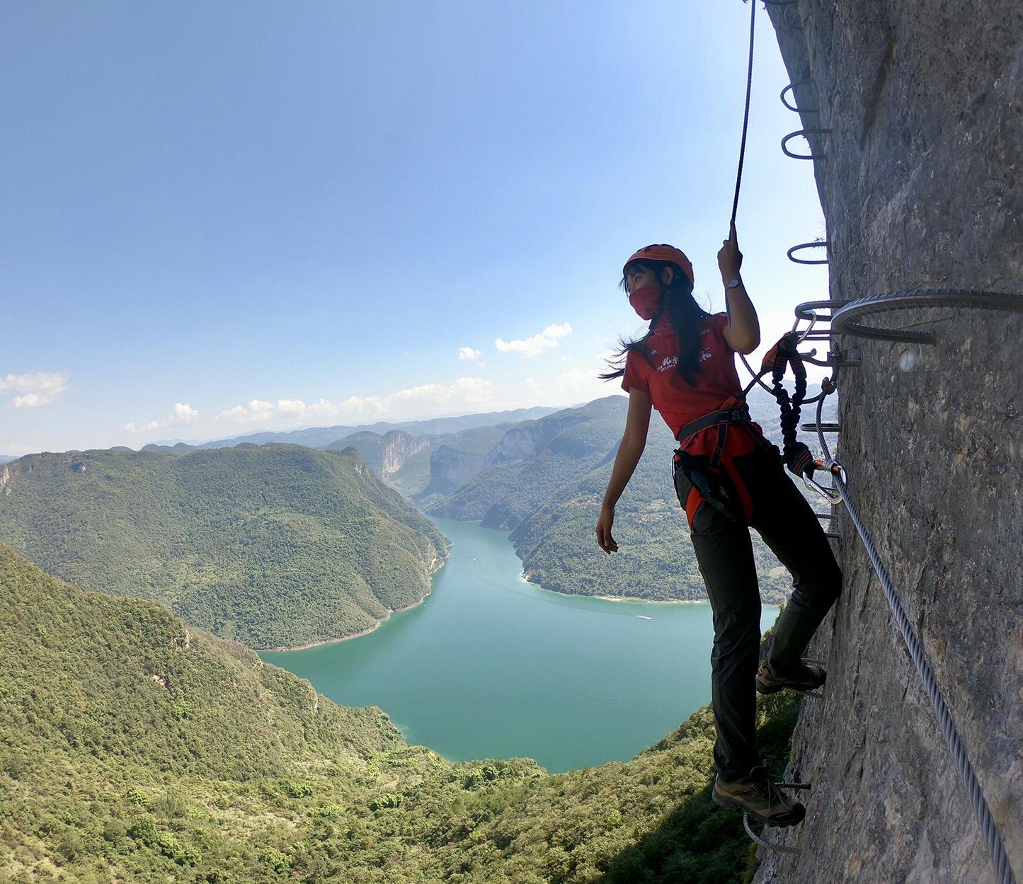飛拉達(dá)是意大利文(Via Ferrata,意為巖壁探險(xiǎn)或鐵道式攀登)的音譯,指的是在山體巖壁上建設(shè),由鋼扶手、腳踏、生命鋼纜等構(gòu)成的攀登徑道,讓不具備攀巖能力的人也能攀上陡峭的巖壁。(王經(jīng)理:18365157674)