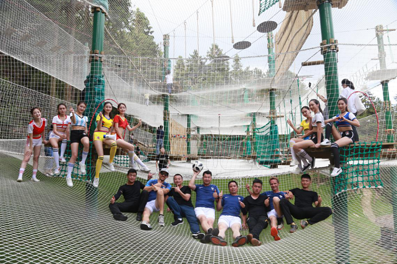 繩網的選擇跟可開展的時長有直接聯(lián)系,室外陰雨天氣時有發(fā)生,如果網面半天的時間不能干燥,那游客的體驗感就大大降低,我們選用輕型材質的網面,大約在半天的自然環(huán)境中即可干燥,讓你的接待時間人為地加長,從而提升經濟效益。